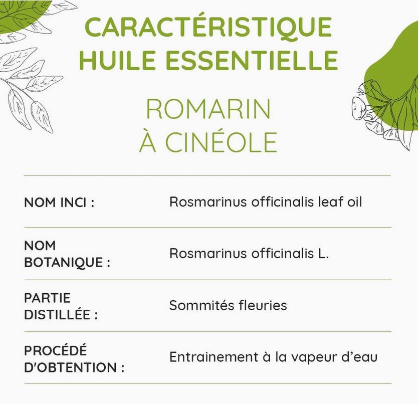 Romarin ct cinéole + Citron zeste (désodorisant d’ambiance ; attention soleil si application cutanée au citron)