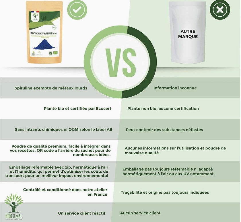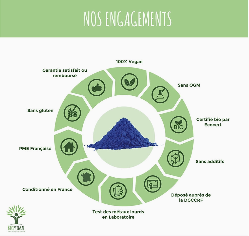 Notre spiruline est soumise à des contrôles rigoureux afin de vous apporter la meilleure sécurité alimentaire. Exempt de métaux lourds et pesticides, elle est contrôlée et conditionnée dans notre atelier en France par nos soins. Naturellement vegan, nous vous proposons le meilleur extrait de spiruline du marché ! Le seul certifié agriculture biologique.